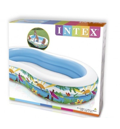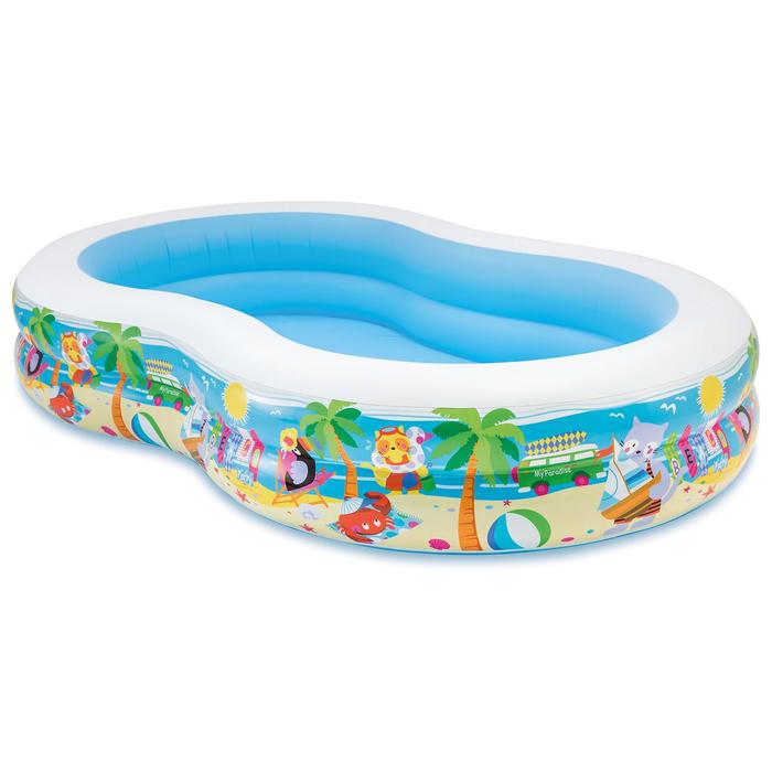 Семейный бассейн "Swim Center Paradise Pool" Intex 56490 - отличный бассейн для всей семьи, особенно где есть маленькие дети. Он сделан из прочного винила, имеет 2 воздушные камеры с двойными клапанами. В нем могут купаться несколько детей и взрослых одновременно. Предусмотрен сливной клапан. Толщина материала 0,32 мм.